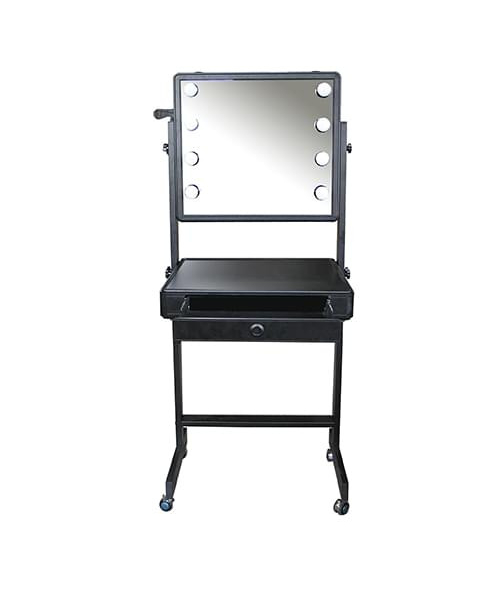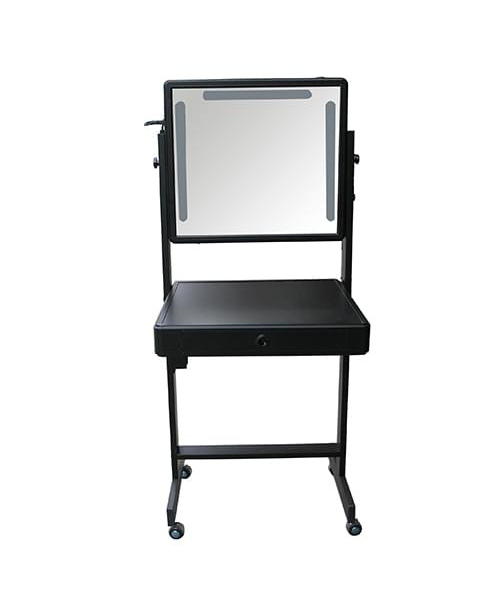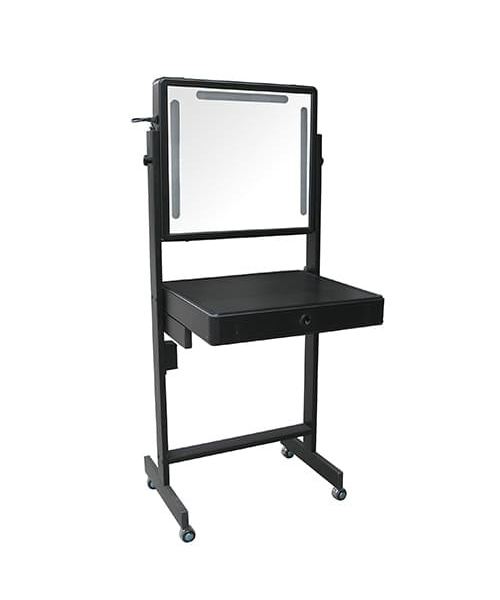 Небольшие колесики позволяют легко перемещать стол визажиста-парикмахера по помещению.